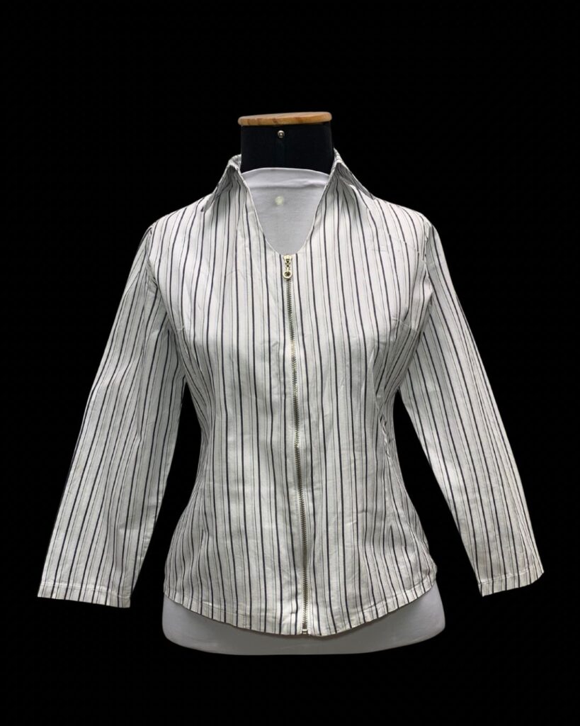 A Camisa Listrada Classic Zip combina elegância e praticidade em uma única peça. Com modelagem levemente acinturada, ela valoriza a silhueta sem perder o conforto. As listras finas trazem um visual moderno e atemporal, perfeito para quem gosta de estilo com sofisticação.
